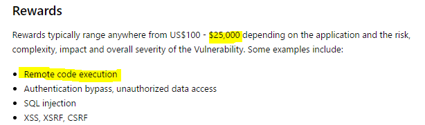 Pero como en toda relación, las cosas se tuercen, y mas cuando hay dinero de por medio. De acuerdo a su página de Bounty, dice que su máximo de pago es 25K por un RCE