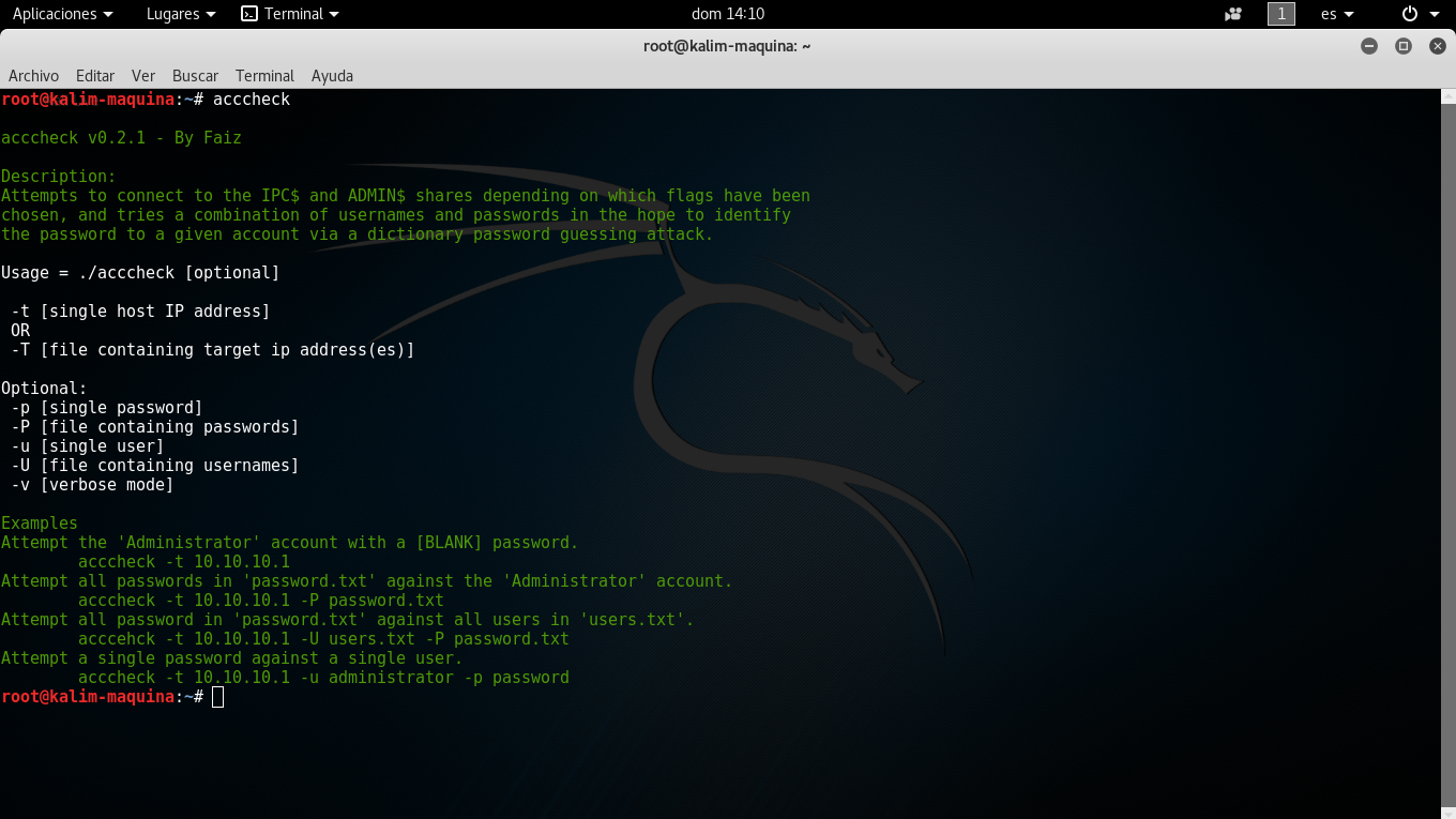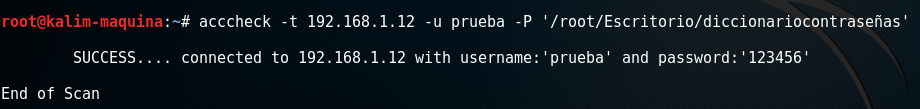 acccheck –t 192.168.1.3 –u Administrador –P ‘/root/Escritorio/diccionario_contraseñas’