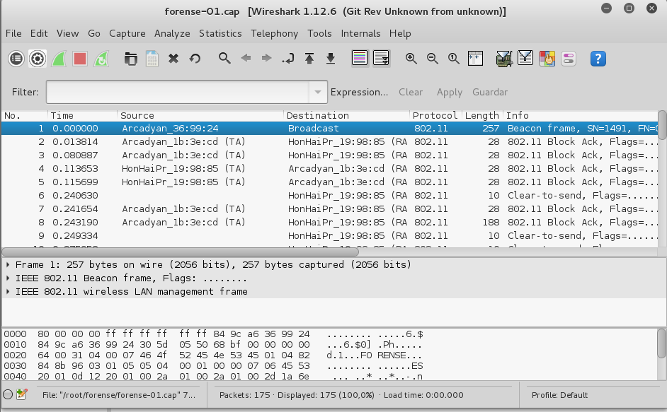 Podemos especificar la red que queremos analizar mediante la selección en el comando de su ESSID, su BSSID y/o el canal en el que trabaja. En este caso, seleccionamos una red que hemos preparado anteriormente para este estudio.