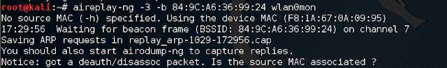 aireplay-ng -3 -b 84:9C:A6:36:99:24 wlan0mon