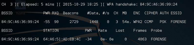 Una vez hecho ésto, lo único que debemos hacer es localizar un cliente de la red inalámbrica y lanzarle ataques de autenticación hasta que podamos ver que se ha capturado el 4 way handshake. Seguramente sean necesarios varios de estos ataques y reautenticaciones por parte del cliente hasta que capturemos el handshake.