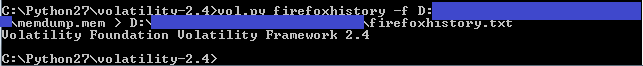 Finalmente, se puede también obtener el historial de navegación del navegador web que se encontraba en ejecución en el momento de la adquisición de memoria.