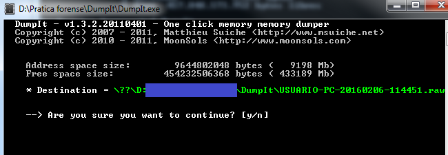 En el caso de emplear DumpIt se realizaría desde la consola de Windows: