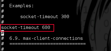 - cambiar «socket-timeout 300» —> «socket-timeout 600«