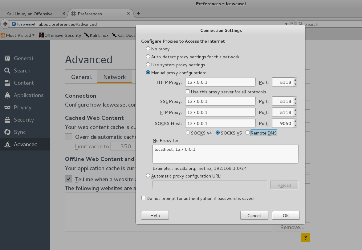 (Aclaración: el puerto 9050 es el utilizado por tor)
