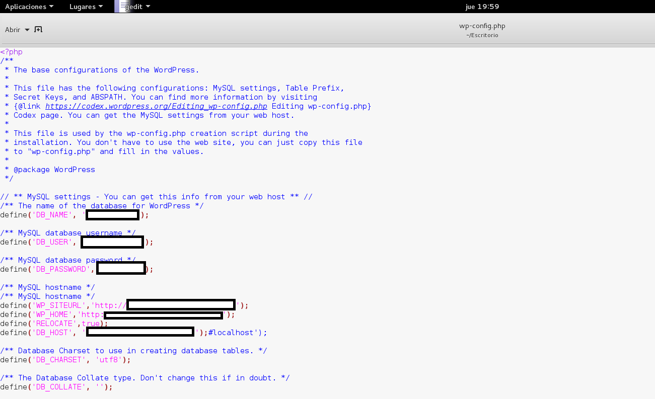 - Obtener el archivo wp-config.php de WordPress, en donde encontraremos por lo menos un usuario y contraseña hacia la base de datos.