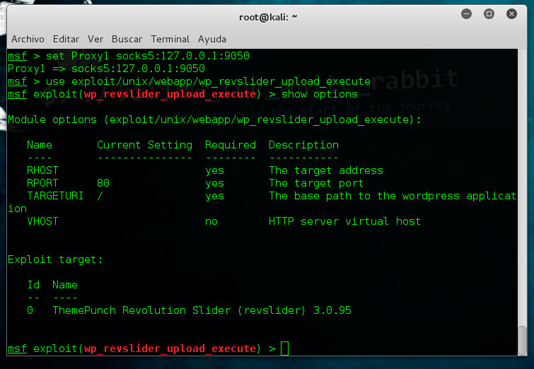 Debido al objetivo de la auditoría nos decantamos por la segunda opción, en caso de elegir la primera utilizaremos metasploit con wp_revslider_upload_execute.