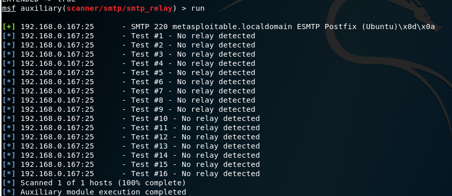 Se cuenta con el módulo de metasploit auxiliary: /scanner/smtp/smtp_relay. Se tiene que configurar los parámetros MAIL FROM y MAILTO, el origen y destino del correo (por defecto ya viene configurado con valores fake).