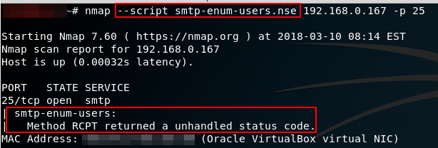 Nmap posee el script «smtp-enum-users.nse» que lista posibles usuarios empleando el comando EXPN. Su principal problema ya lo podeéis imaginar, si dicho comando está deshabilitado no obtendrá resultados.