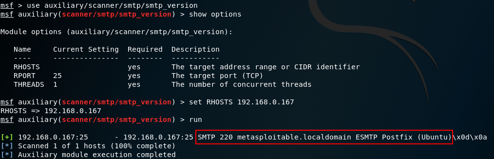 - Metasploit cuenta con un módulo auxiliar: /scanner/smtp/smtp_version