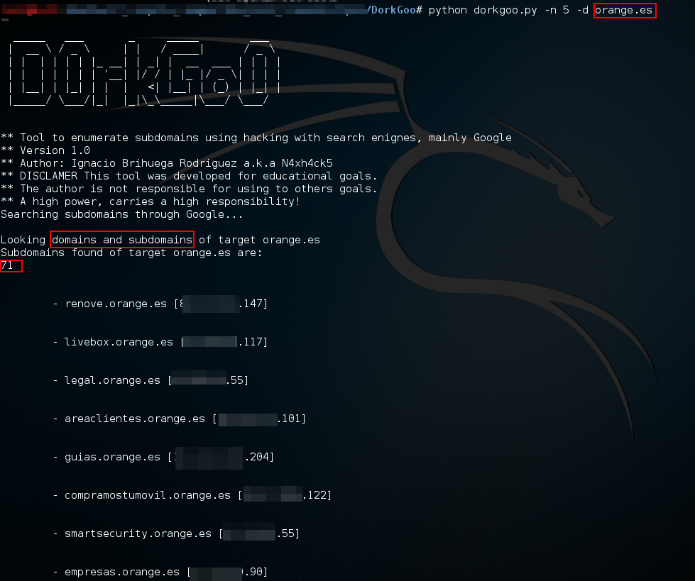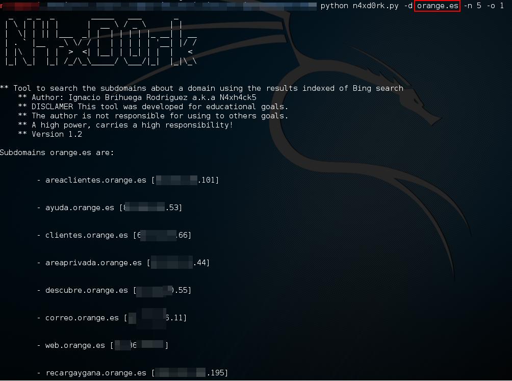 Esto último es muy interesante en la práctica, pues a nivel profesional me ha permitido obtener dominios que Bing a través de N4xD0rk no tenía identificados.