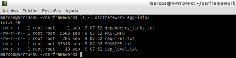 Ahora, si listamos el directorio ‘osrframework.egg-info’, observaremos que tiene unas dependencias.