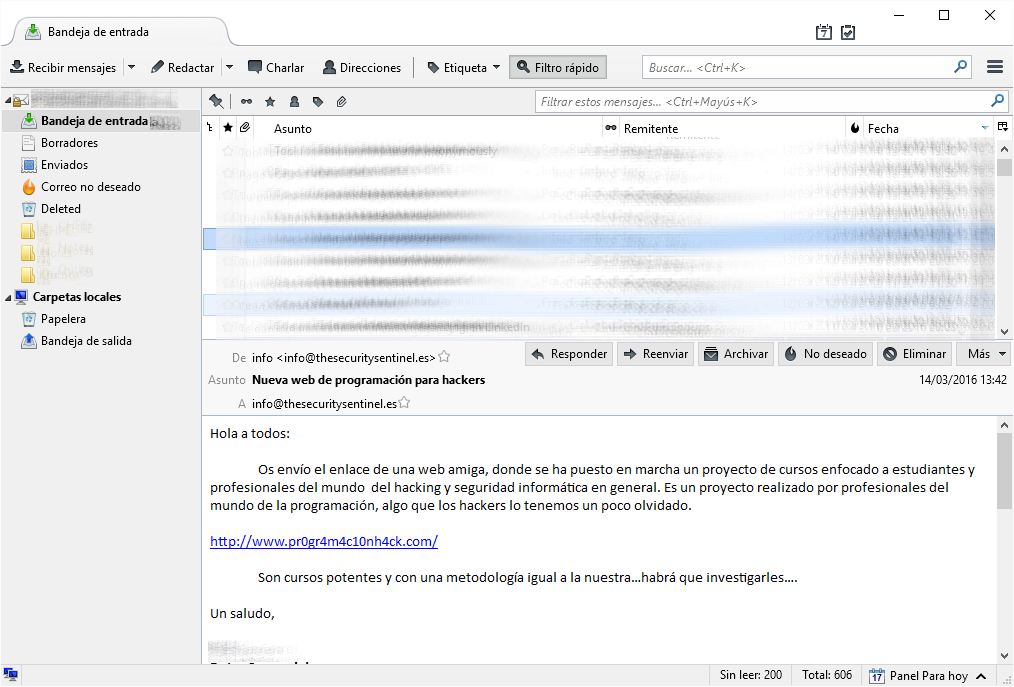 | Cliente Thunderbird en funcionamiento (¡y un poco de publi amiga!) |