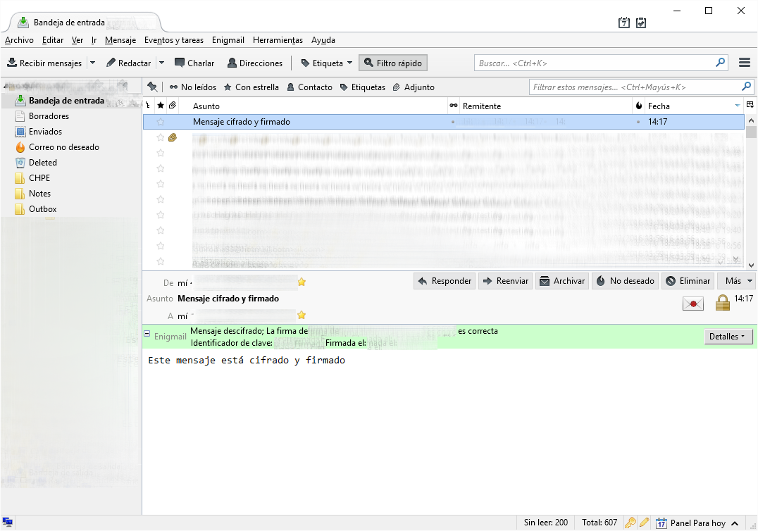 Tras esto, ya tendremos Enigmail perfectamente configurado y listo para funcionar.