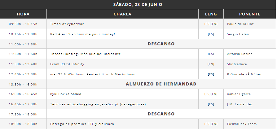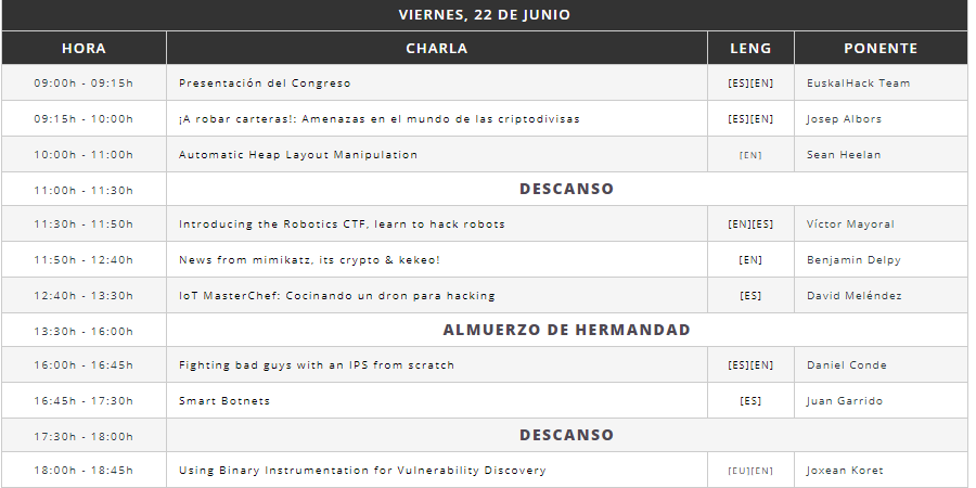 Es la primera vez que acudí a este evento y es TREMENDO! Una CON que merece muchísimo la pena, tanto por la calidad de los ponentes, pero especialmente por el trato y calidad humana que recibimos por parte de la organización, un 10 como anfitriones. San Sebastian, preciosa ciudad, buena gente, impresionante comida y por supuesto, excelente hacking. Desde del blog, recomendamos ir si tenéis la oportunidad.