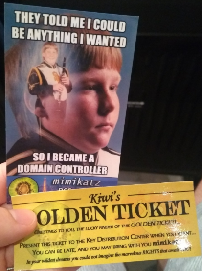 Como anécdota Benjamin Delpy, llevó una seria de pegatinas muy chulas de mimikatz: