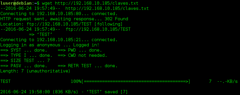 En una redirección de HTTP a un recurso FTP, wget confia en el servidor HTTP y usa el nombre