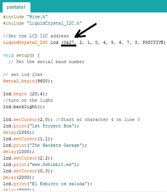 Tras este paso… vamos a localizar la dirección de nuestra pantalla utilizando el escáner I2C