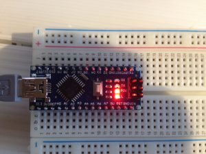 Para empezar se nos anima a trastear con el Arduino Nano que trae haciendo que parpadee la lucecita de la placa con el código de ejemplo BLINK! .