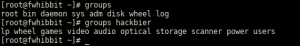 El comando groups nos permite identificar los grupos a los que pertenece un determinado usuario. Como viene siendo habitual, en el caso de omitir usuario, nos devolverá los grupos a los que pertenece el usuario desde el que se lanza la orden.