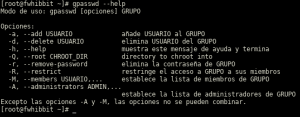 Permite crear o modificar la contraseña de un usuario. En el caso de no especificar usuario, se cambiará la contraseña del usuario iniciado. Ojo, el usuario root tiene el poder para utilizar este comando y cambiar las contraseñas de cualquier usuario.