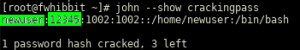 Y ¡BINGO!. Hemos capturado la contraseña -nada segura, por cierto- del usuario newuser. Por supuesto esto es sólo una prueba, y nadie usa a día de hoy este tipo de contraseña… ¿o sí?. Cuanta más información recopilemos de nuestras víctimas con técnicas de reconocimiento, recolección de información, OSINT, etc. Más posibilidades tendremos de obtener éxito. Podríamos incluso realizar nuestros propios diccionarios personalizados para cada persona-usuario, usando por ejemplo YOW: herramienta creada por nuestro compañero @juanvelasc0 para crear diccionarios personalizados.