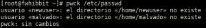 El uso de la utilidad ‘pwck’ comprueba la integridad y la información de autenticación. Comprueba que todas las entradas en /etc/passwd y /etc/shadow tienen el formato adecuado y que los datos sean válidos. Su sintáxis es: