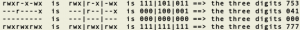 De esta forma, es posible indicar con sólo 3 dígitos octales los permisos de un fichero o directorio y pudiendo traducir el modo anterior a modo octal fácilmente.