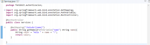 Para ello nos creamos una clase java (Services.java en este caso) y a través de la etiqueta @RestController marca la clase como controlador Rest: Equivale a las etiquetas @Controller y @ResponseBody.