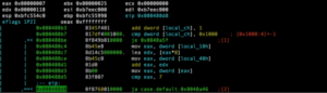 Si realizamos bastantes iteraciones nos damos cuenta de que va comprobando uno a uno, puntero a puntero de que el valor sea igual a “07” pero es “02” porque empieza desde el primero de todos. Así que seguimos ejecutando justo cuando la comparación sea igual para ver lo siguiente que realizara. Ahí vemos nuestro eax que vale “07” jeje.