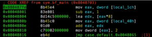 El interprete se encuentra en la función sym.bf_main por tanto solo deberemos realizar nuestra tarea de ingeniería inversa en esa función.