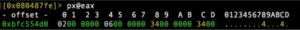 Por tanto imprimirá ese valor. Si analizamos el stack nos interesa visualizar la dirección de retorno así que solo tenemos que calcular la diferencia para añadir mas desplazamientos del puntero con “>”.