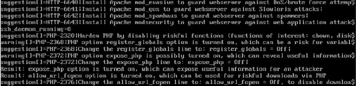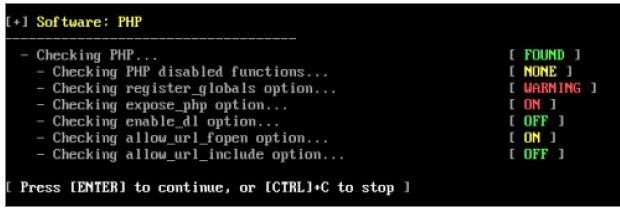 En este caso, analizando los avisos que ha detectado se puede observar dos registros de PHP que anteriormente en las recomendaciones básicas se deberían deshabilitar.