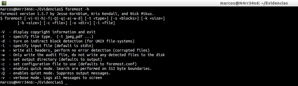 Pero, ¿De dónde me he sacado la opción ‘-T’? Porque no venía explicada en su ayuda, con su parámetro ‘-h’. Pues de algo que siempre tenemos que leer. De su ‘man foremost‘
