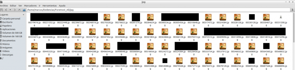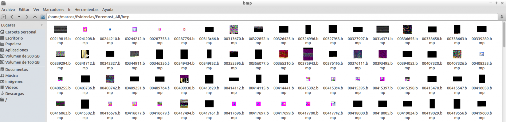 Si afináis un poco la vista, podréis ver que existen ficheros que no se pueden visualizar y otros que parecen incompletos. Esto significa que están incompletos, dañados, o que foremost ha encontrado una coincidencia en los números mágicos establecidos, pero no se corresponden realmente con el tipo de fichero.