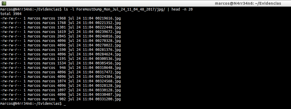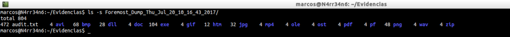Fijaros en la cantidad de extensiones de ficheros que ha conseguido recuperar, a diferencia de la ejecución anterior.