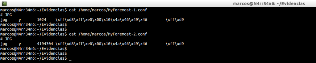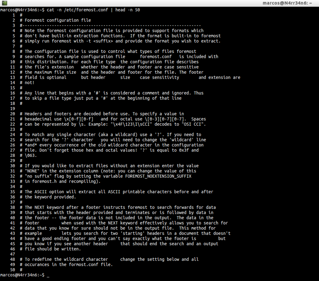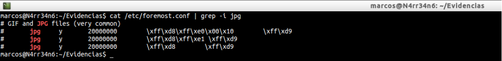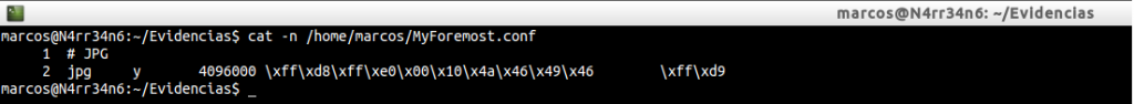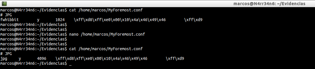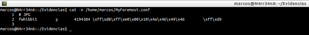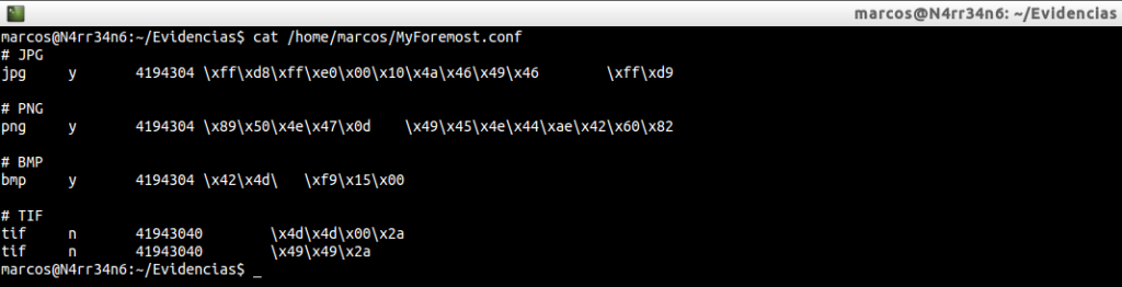 Y con estos datos, nos creamos o modificamos nuestro fichero ‘foremost.conf’