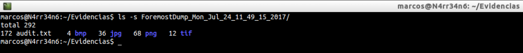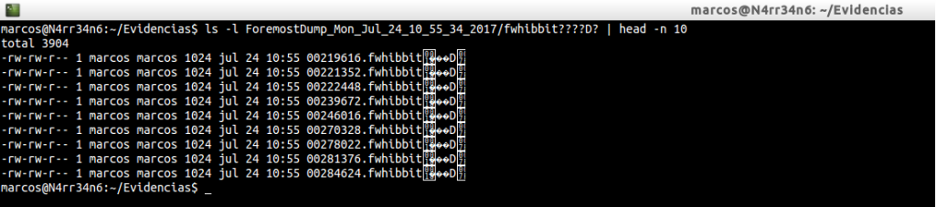 Tenemos, de nuevo, las evidencias del caso anterior: Un volcado de memoria RAM, que pertenece al Señor ‘X’, y que listamos mediante ‘ls‘
