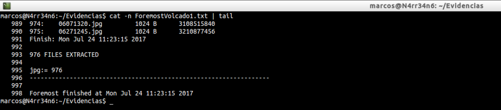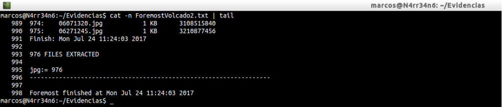 Y podemos ver que ha extraído un total de 976 ficheros. Si comparáis estos resultados, podréis comprobar que en esta ocasión se han extraído más archivos que en el otro caso.