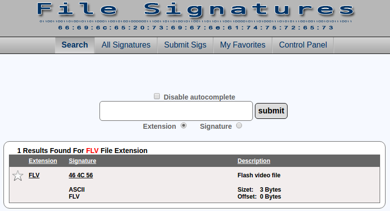 Por ejemplo, un fichero que no está disponible en el fichero de configuración de foremost, es ‘flv’. Pues, si no tenemos disponible en nuestro equipo ese tipo de fichero, lo buscamos y lo descargamos.