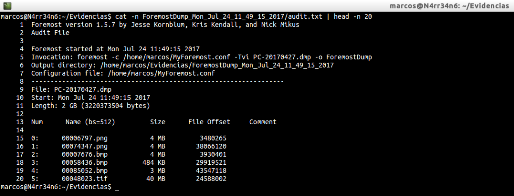 cat -n ForemostDump_Mon_Jul_24_11_49_15_2017/audit.txt | head -n 20