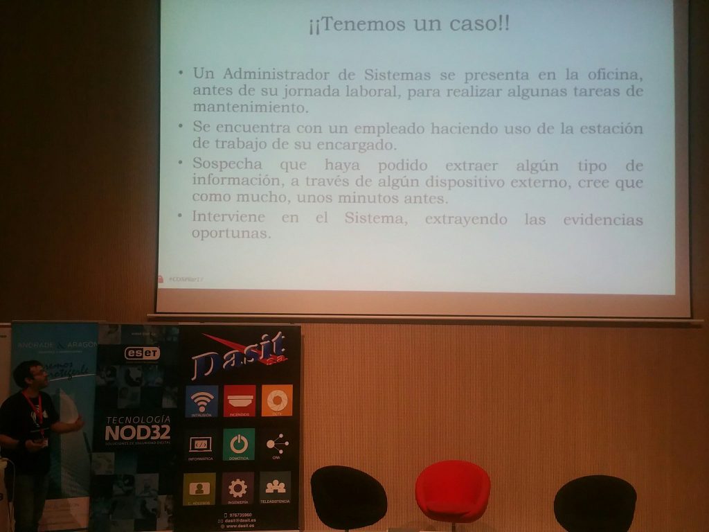 ¿Y de qué habló este ‘mindungui’?. Mi ponencia trataba de temática Forense, y tenía por título «Ser curioso NO es una opción». En ella, simulaba un supuesto caso de fuga de información, donde se ejecutaba una herramienta antiforense.