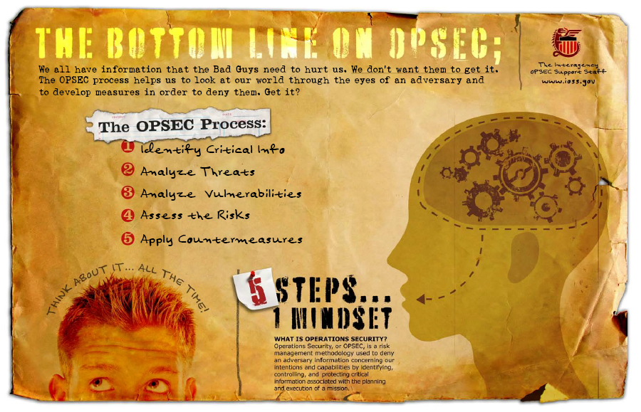 El OPSEC, en resumen, es: Mantén la boca cerrada. Guarda tus secretos. Cuanto menos cuentes, mejor estás. Nunca dejes que nadie llegue a una posición en la que pueda chantajearte o amenazarte.