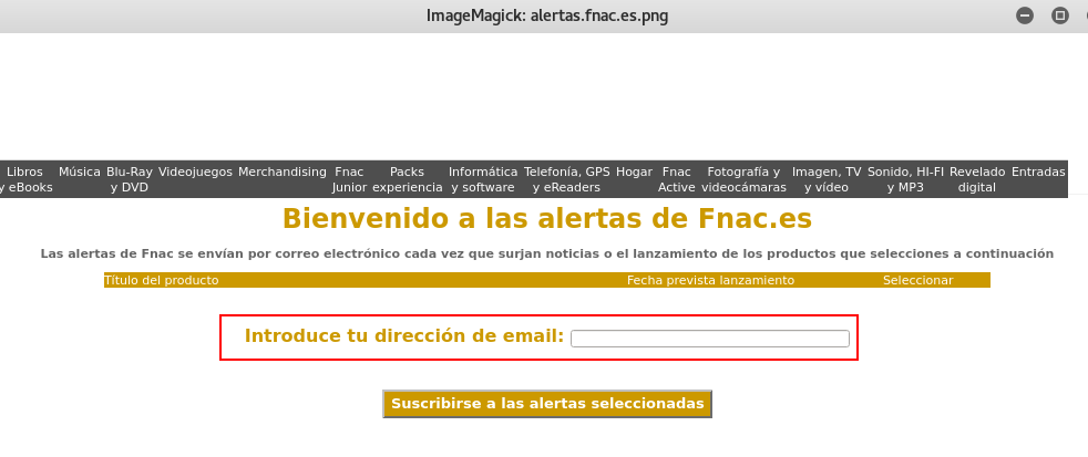 Formulario de suscripción a alertas: