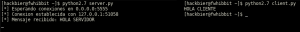 Comprobamos su funcionamiento, poniendo primero el servidor a la escucha, y después ejecutando el cliente. Ojo, recuerdo que estamos usando Python 2.7.