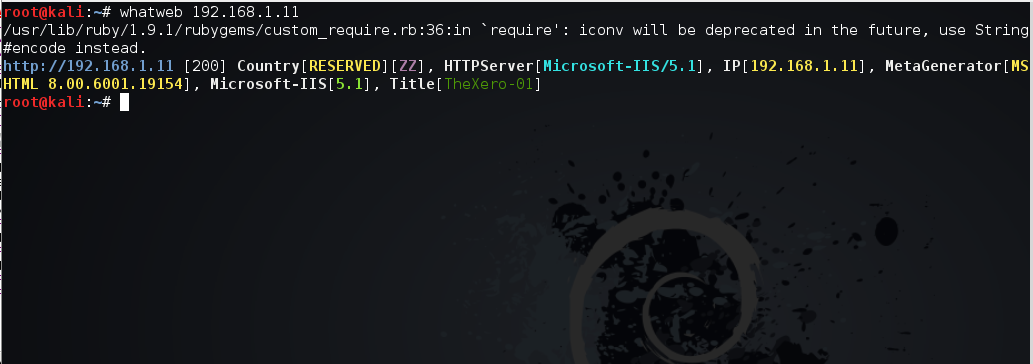Salida de WhatWeb sobre el servicio web