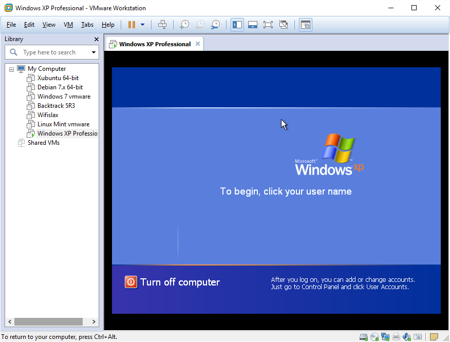 Máquina XP de Bobby funcionando en Vmware Workstation