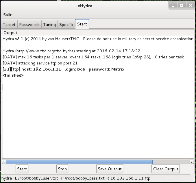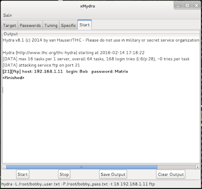 El resultado aparece enseguida; hemos tenido suerte. El usuario es bob, la contraseña es Matrix. ¡Hay que proteger más los servicios, hombre!