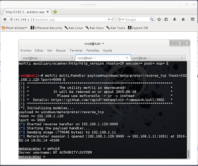 El backdoor deberá ser activado mediante el servicio web; para ello, tendrá que tener un formato de página web. Sabemos que el servidor es un Microsoft IIS con tecnología ASP, así que tendrá que ser un código ejecutable en dicho entorno.
